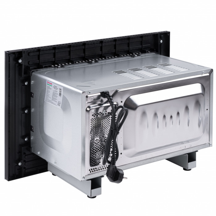 Компактные размеры позволят установить эту микроволновку даже в верхнем навесном шкафу. Это открывает новые возможности организации места на вашей кухне. Дизайн передней панели микроволновки Perfelli BM 205 оформлен с использованием закаленного стекла.
