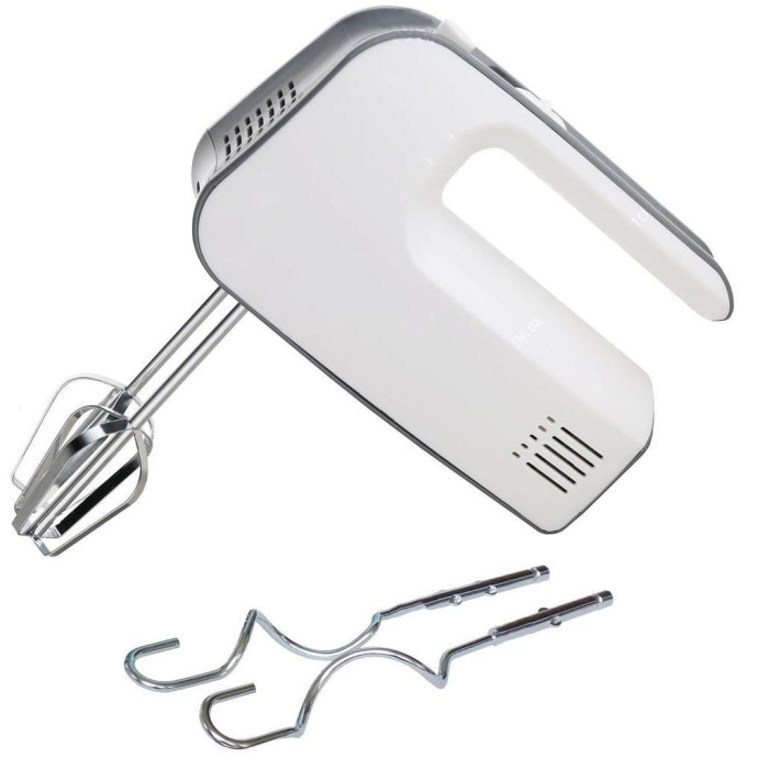 Модель выполнена из качественного пластикового материала в бело-сером цветовом оформлении. Его мощности (300 Вт) вполне достаточно, чтобы быстро справляться с такими процессами, как взбивание, яиц, белков, сливок, а также соединение различных ингредиентов для приготовления пирогов и тортов.