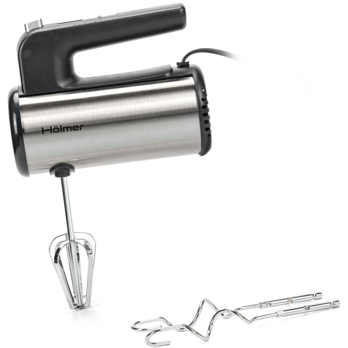 Классический дизайн Модель Hölmer HHM-45 улучшенной эргономичной формы представлена в цвете металлик. Корпус миксера изготовлен из качественного пластика, а мощные венчики для взбивания и крюки для замешивания теста – хромированной стали.
