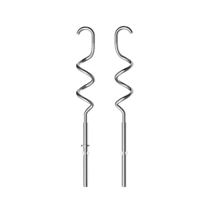 Высококачественные венчики из нержавеющей стали легко справятся с поставленной задачей: от идеально взбитых яичных белков и взбитых сливок до вкусного теста для кексов. 2 крюка для теста из нержавеющей стали. Прочные крючки для теста из нержавеющей стали легко перемешают плотное и упругое тесто для хлеба, пиццы и других мучных изделий