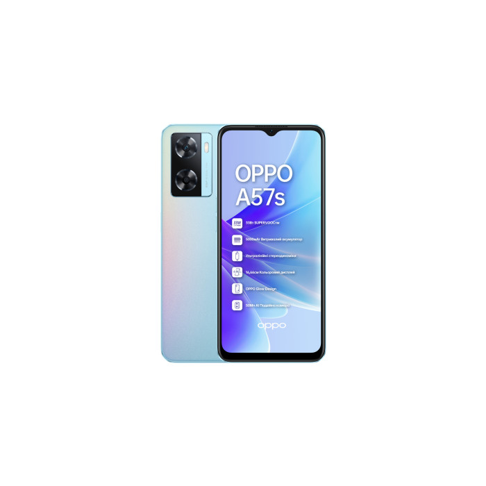 С OPPO A57s ваш день от первой до последней минуты наполнится энергией, цветом и звуком, которые сделают его еще лучше. Большой аккумулятор и супербыстрая зарядка SUPERVOOCTM 33 Вт позволят не экономить заряд. 6,56-дюймовый дисплей с богатой палитрой цветов и ультралинейный стереодинамик выведут развлечения на новый уровень, а двойная камера 50 МП с искусственным интеллектом поможет запечатлеть все важные мгновения с высокой четкостью.