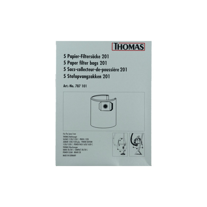 Совместимы с: Thomas Power Edition 1520 / Thomas Power Edition 1620 / Thomas Vario 20 / Thomas Compact 20 / Thomas Bravo 20. В комплекте 5 мешков пылесборников.