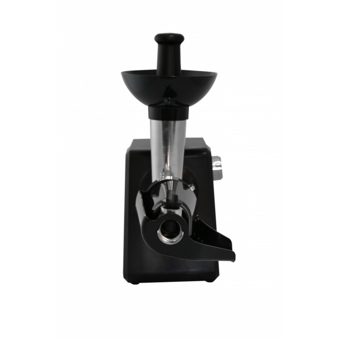 Для удобной подачи кусочков мяса и других ингредиентов модель укомплектована пластиковым лотком с широким отверстием и толкателем, что обеспечивает максимальную безопасность в работе. С прорезиненными ножками мясорубка надежно устанавливается на кухонном столе. Все съемные элементы прибора легко очищаются от остатков пищи.