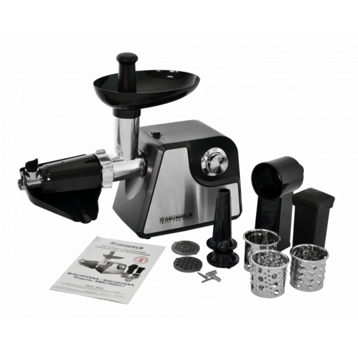 Мясорубка GRUNHELM AMG180SSJ - мощностью 1800 Вт легко и быстро измельчить различные ингредиенты для ваших блюд. С ее помощью можно получить фарш различной текстуры и консистенции. Для этого предусмотрены две решетки с отверстиями разного диаметра.