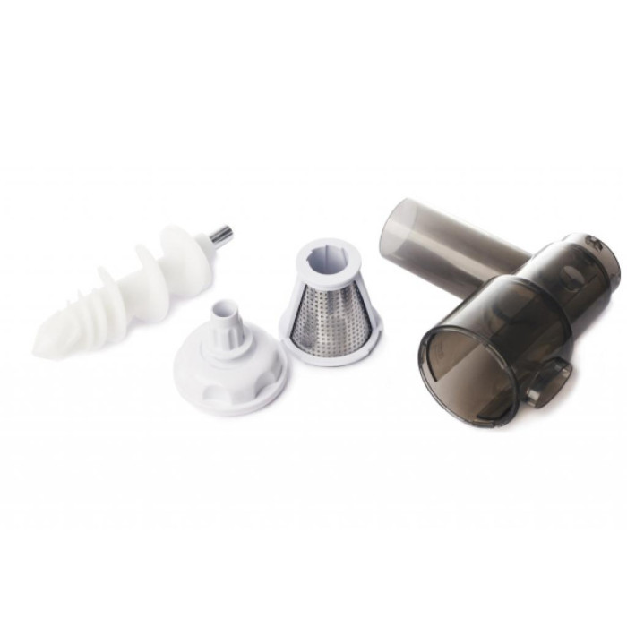 Особо отметим наличие шнековой соковыжималки, которая позволяет получить сок из любых овощей и фруктов, ягод, конеплодов и даже зелени. Преимущество шнековой соковыжималки в том, что благодаря низкой скорости вращения шнека сок не нагревается, не окисляется, а значит сохраняет все свои полезные витамины и минералы. Для отжима сока необходимо присоединить насадку и выбрать специальный режим SLOW.