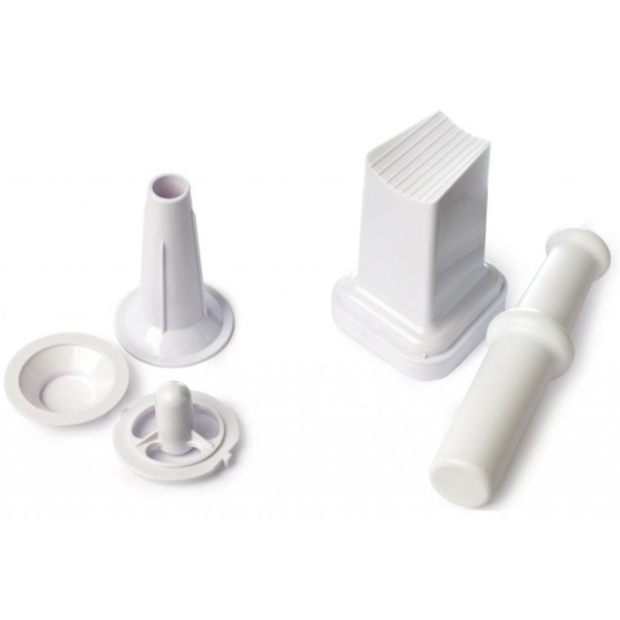 Поддерживающая номинальную мощность 700 Вт мясорубка способна за минуту переработать 2,1 кг мяса, при этом консистенция и степень помола фарша будет зависеть от того, какой вы будете использовать перфорированный диск. Устройство комплектуется двумя такими решетками с разными по диаметру отверстиями. Для удобства помола предусмотрен режим реверса, а для безопасной подачи продуктов имеется толкатель.