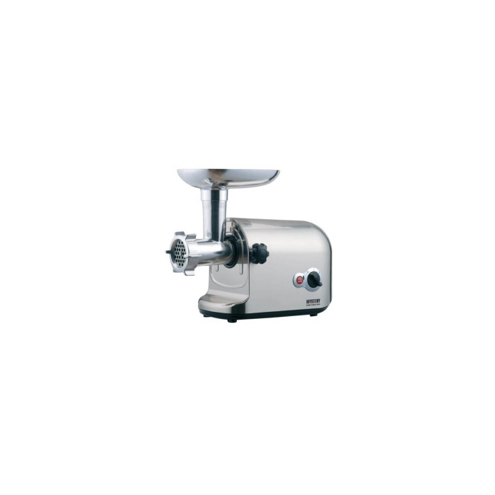 Мясорубка от фирмы Mystery отличается высокой надежностью и работоспособностью. Она работает от электричества, потому можете позабыть про механические действия. Мощный двигатель справится со всеми видами мяса, в том числе с бараниной, говядиной и свининой, а также птицей, филе рыбы, овощами и фруктами, хлебом. Стильный дизайн и устойчивость позволят выбрать данное устройство среди прочих. Удобное управление с поворотным регулятором и кнопка запуска расположена на корпусе. Отверстие для продуктов довольно широкое, что позволит без проблем загружать большие куски.