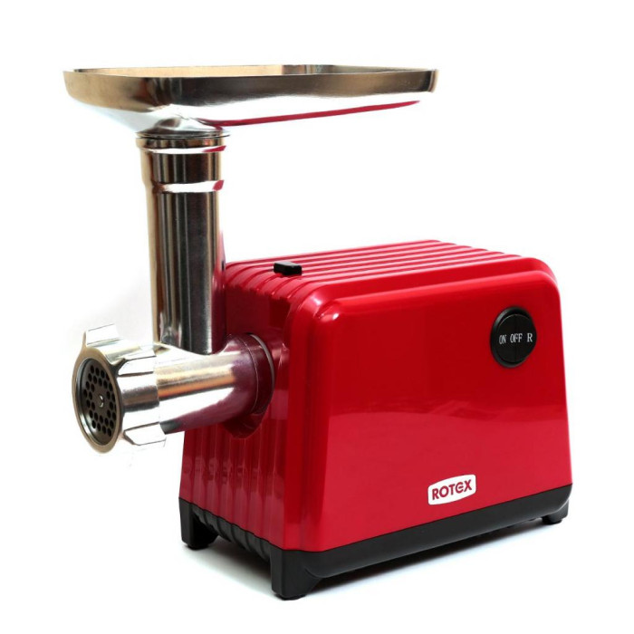 Мясорубка RMG201-T от Rotex с максимальной мощностью в 2000 Вт оснащается функцией "Реверс" и имеет алюминиевый лоток для мяса. Головка корпуса и шнек изготовлены из высококачественного алюминия.