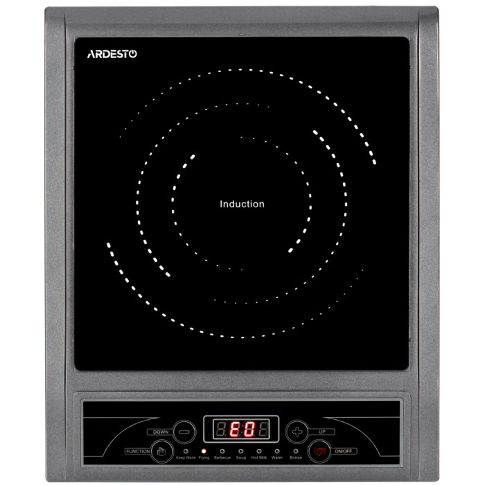 Индукционная электрическая варочная поверхность на одну конфорку с мощностью 2000 Вт, сенсорным управлением, регулировкой температуры и мощности, а также таймером приготовления и защитой от перегрева и перепадов напряжения.