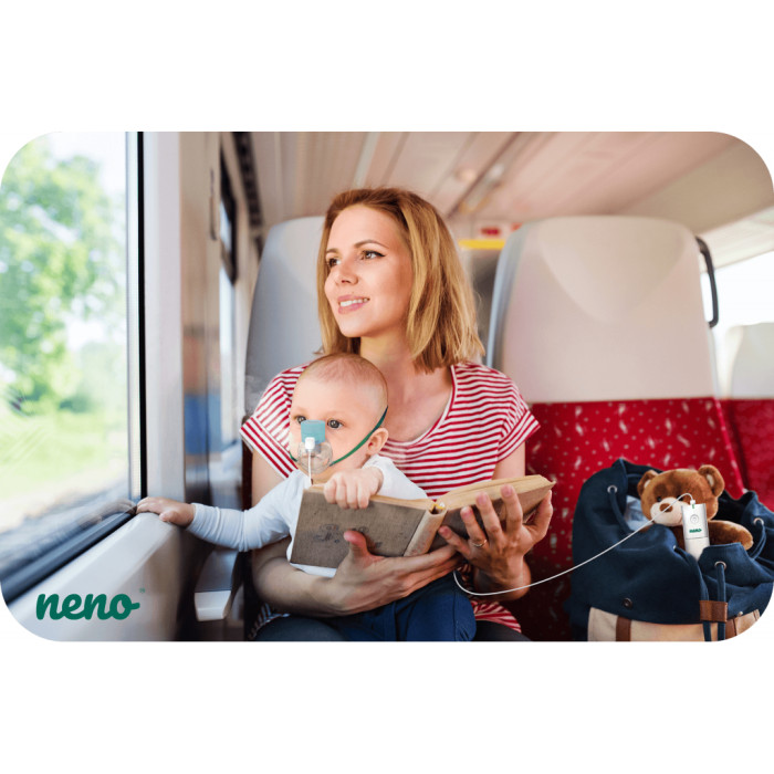 Мембранный небулайзер Neno Bene действительно небольшой, легкий и полностью портативный, что делает его идеальным не только для домашнего использования, но и для прогулок, путешествий или отдыха. Вы можете подключить его к powerbank или к включенной аккумуляторной батареи, что питается от 2-х "пальчиковых" батареек, и использовать устройство по беспроводной сети. Все это помещается в кармане или кошельке, но в Neno Bene есть своя тканевая сумка, где можно хранить как небулайзер, так и все маски.