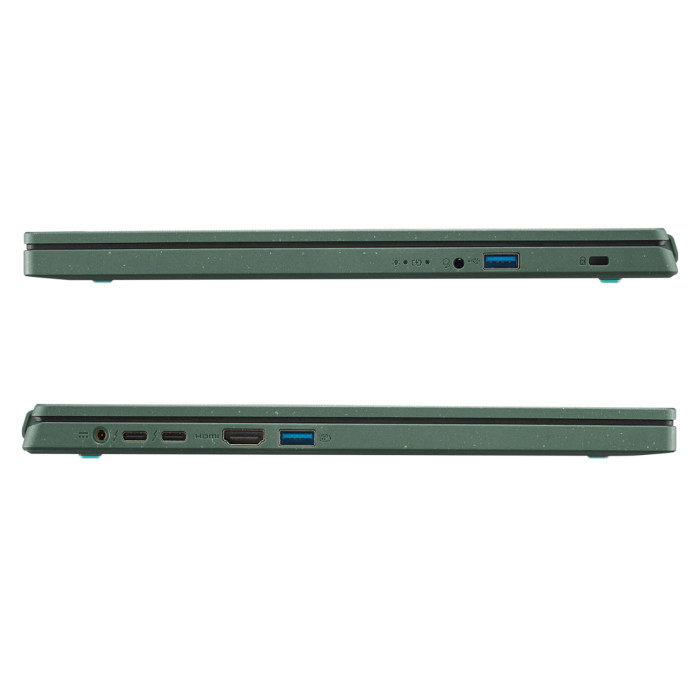 В верхней и нижней панелях, рамке экрана и рабочей поверхности Acer с гордостью использует переработанный пластик.