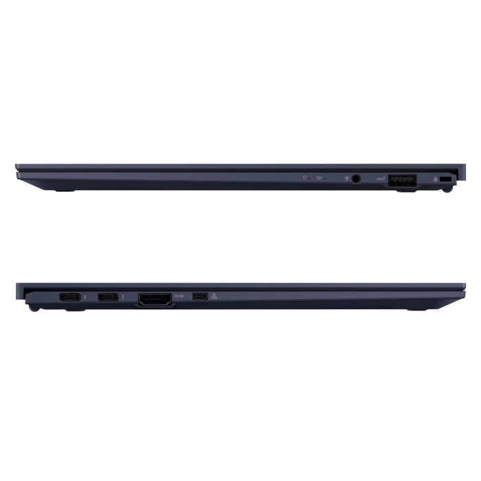 Ноутбук ExpertBook B9 наделен полноценным комплектом интерфейсов, включающим Thunderbolt 4 (40 Гбит/с, поддержка дисплеев формата 4K, ускоренная подзарядка, совместимость с USB4), USB Type-A и видеовыход HDMI. В общей сложности к нему можно подключить сразу три внешних дисплея с разрешением 4K. Также имеется возможность подключения к проводным сетям с индивидуальным MAC-адресом – удобно для администрирования устройства в рамках корпоративной инфраструктуры.