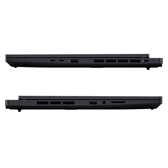 Полноценный комплект современных интерфейсных портов позволяет с легкостью подключить к ProArt Studiobook Pro 16 OLED всю необходимую периферию, а сам ноутбук – к компьютерной сети. В наличии – Thunderbolt 4 (разъем USB-C), USB 3.2 Gen2 Type-C (с электропитанием Power Delivery и режимом DisplayPort), разъем RJ-45 для проводной сети (Gigabit Ethernet), HDMI-порт новейшей версии 2.1 и слот для карт памяти SD Express 7.0. Встроенный беспроводной модуль соответствует стандарту Wi-Fi 6.