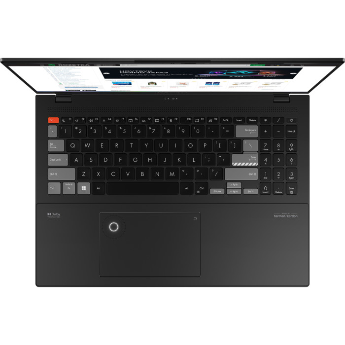 Ноутбук Vivobook Pro 16X OLED оснащен бесподобной аудиосистемой Dolby Atmos, сертифицированной Harman Kardon. Стереодинамики ноутбука издают кристально чистое звучание. Аудиосистема с поддержкой технологии Dolby Atmos позволит вам погрузиться в атмосферу любимых развлечений: музыка, фильмы и телевидение станут невероятно реалистичным миром, который разворачивается вокруг вас.