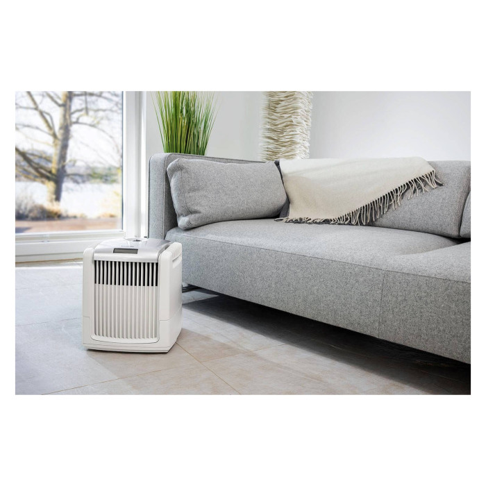 Универсальный прибор увлажняет воздух в помещении методом холодного испарения и дополнительно очищает его за счет мойки воздуха. Подушечки с ионами серебра* предотвращают размножение бактерий и грибков в воде, исключая необходимость добавления химических жидкостей.