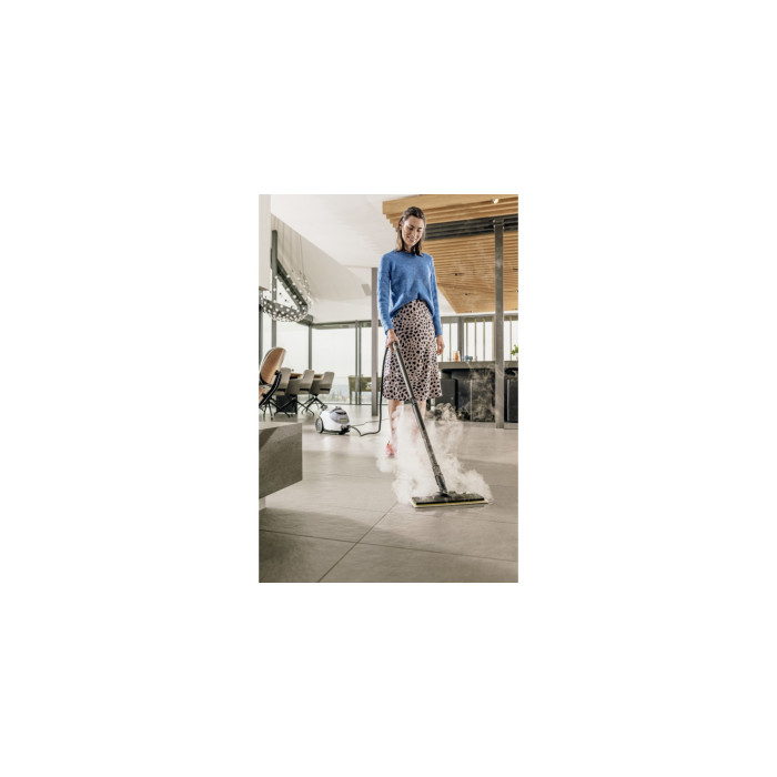 Чистка и глажка? Полный вперед! Для Kärcher это не проблема. Это связано с тем, что самый мощный пароочиститель в своем классе также оснащен возможностью подключения парового утюга. Тщательная очистка пароочистителем Kärcher удаляет 99,999 % вирусов и 99,99 % всех распространенных бытовых бактерий с обычных твердых бытовых поверхностей. Используя различные аксессуары, плитка, варочная панель, вытяжка и даже самые маленькие щели станут безупречно чистыми, независимо от того, есть ли на них легкие или стойкие загрязнения. Насадка для пола EasyFix с гибким шарниром обеспечивает эргономичную работу. А ламельная технология гарантирует идеальные результаты очистки. Салфетку для чистки пола можно легко прикрепить к насадке для пола и снова снять, не соприкасаясь с грязью. Функция VapoHydro еще проще удаляет стойкие загрязнения, добавляя горячую воду. Интенсивность пара можно регулировать в зависимости от поверхности и загрязнения. Съемный резервуар для воды можно постоянно наполнять – для непрерывной очистки.