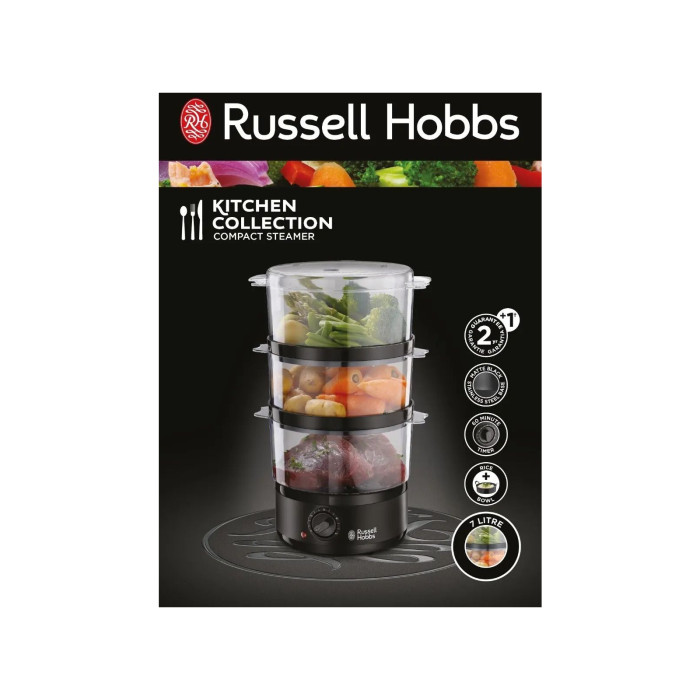 Компактная пароварка Kitchen Collection 26530-56 от Russell Hobbs – это здоровый способ приготовления пищи. Ведь приготовленные на пару продукты сохраняют максимальное количество питательных веществ и витаминов. Эта трехуровневая пароварка разработана, чтобы удовлетворить все ваши потребности. Три отдельных емкости позволяют готовить разные продукты сразу, включая рис, овощи и рыбу. А резервуара объемом 500 мл (максимальное заполнение) хватает на 60 минут без дополнительного добавления воды.