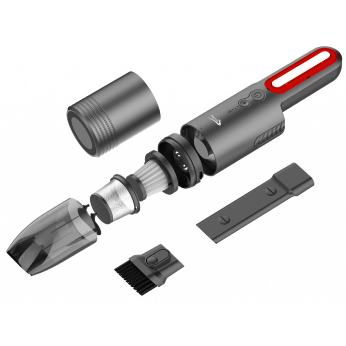 Интуитивно понятная механическая система управления представлена кнопкой активации. Модель работает на Li-ion батареи 7,4V 4400mA Дополнительная щелевая насадка помогает выполнить уборку в труднодоступных местах. Благодаря компактным габаритам автомобильный пылесос Aspiring Dust 1 можно хранить как в багажнике, так и в отделении для перчаток, так же есть встроенный фонарик.