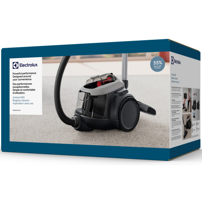 Инновационный циклонный принцип работы пылесоса Animal 600 - гарантия отличной уборки, а эргономичная конструкция обеспечивает удобство опорожнения пылесборника. В комплекте набор для животных, идеальный для удаления шерсти домашних животных с обивки и ковров.