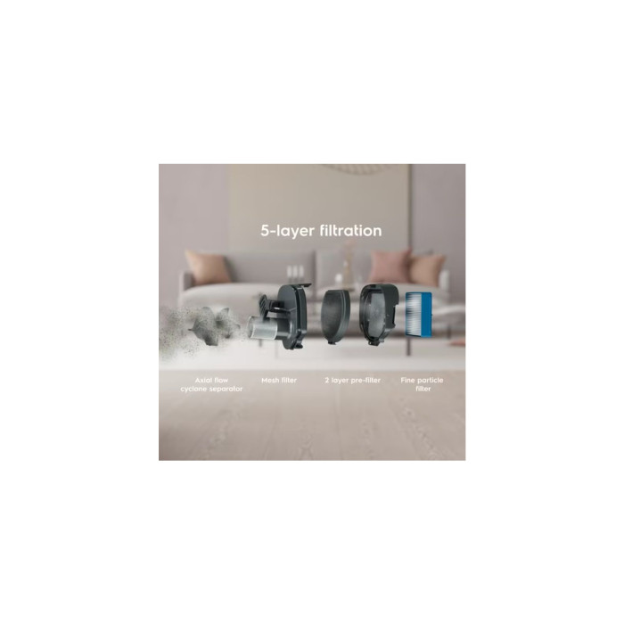 Удаляет мелкую пыль и частицы размером от -1.0 мкм до частиц такого же размера как пыльца, бактерии, постельные и пылевые клещи, обеспечивая гигиеническую чистоту кроватей и диванов.