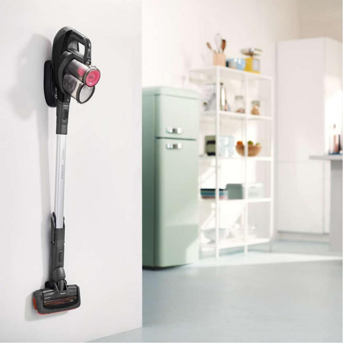 Аксессуары легко достать и установить. Съемный ручной блок превращает SpeedPro в два разных прибора, а чистящая насадка встроена в трубу, так что всегда будет под рукой для очистки потолков и полок.
