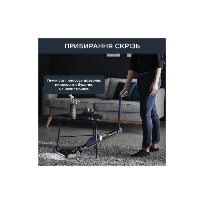 Компактный, обтекаемый дизайн и тонкая рама, которая легко и плавно помещается везде, даже под низкой мебелью, без необходимости наклоняться благодаря усовершенствованной двунаправленной технологии Flex.