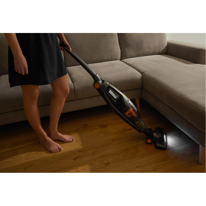- Наконечник со светодиодной подсветкой помогает удобно обнаружить пыль и упрощает процесс уборки в слабо освещенных местах.