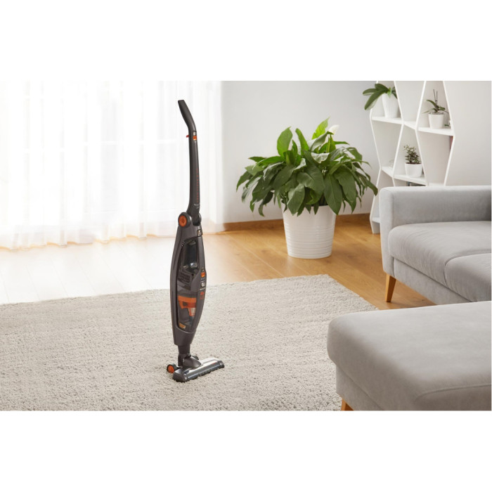- Хорошая управляемость и маневренность вблизи предметов мебели благодаря возвращающейся насадке на 18 а также маленькой массе пылесоса.