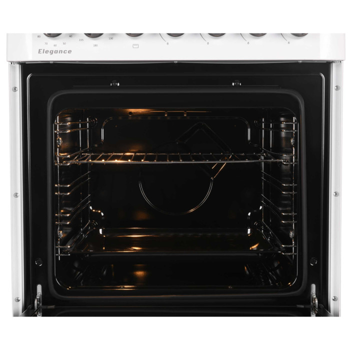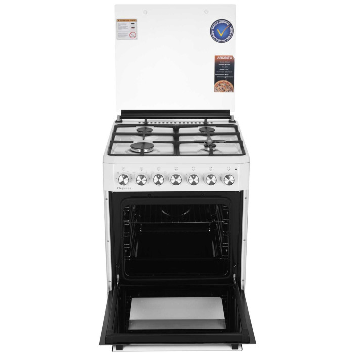 Плита ARDESTO Elegance FSCF-C604W классического белого цвета. Относится к типу комбинированных: газовая поверхность, духовка – электрическая. Устройство безопасно, что подтверждает класс I. Поверхность имеет четыре конфорки (горелки) круглой формы, защищенные съемными чугунными решетками. Зажигание автоматическое, в ручке. Имеется механический таймер. Плита оснащена стеклянной крышкой. Духовой шкаф объемом 72 л. Имеет два стекла дверцы, съемные направляющие и подсветку. Класс энергоэффективности камеры духового шкафа B. Нижнее откидное отделение предназначено для хранения посуды и кухонных принадлежностей. Размер (в × ш × г) 89,1 × 59,7 × 61,9 см. Вес 39,5 кг