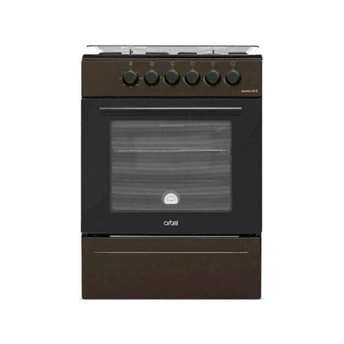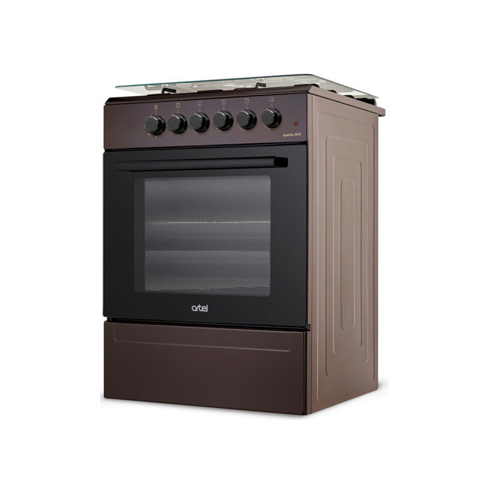 Комбинированная плита ARTEL, выполненная в стильном коричневом цвете, удачно дополнит интерьер вашей кухни. Наличие стеклянной крышки предотвратит попадание брызг жира на кафель или обои. Варочная поверхность оснащена 4 газовыми конфорками разной мощности. Над ними расположены две прочные решетки, выполненные из эмалированной стали. На таких держателях удобно размещать посуду разных форм и размеров. Варочная поверхность получила высококачественное эмалированное покрытие, которое легко очищается от остатков пищи