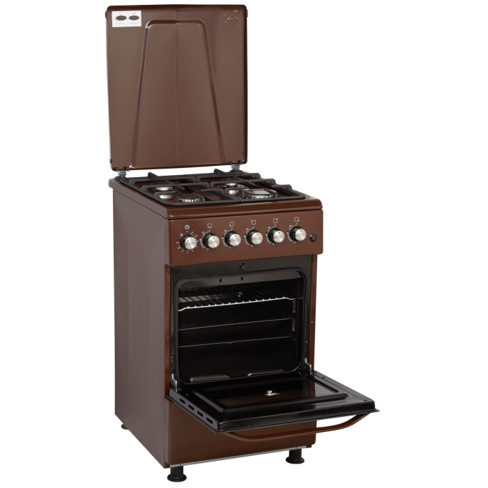 ELEYUS CAST 5001 – кухонная плита с газовой варочной поверхностью и газовым духовым шкафом объемом 50 л. Металлическая крышка защищает стену от загрязнений при готовке, а регулируемые ножки позволяют изменить высоту плиты и надежно ее установить.