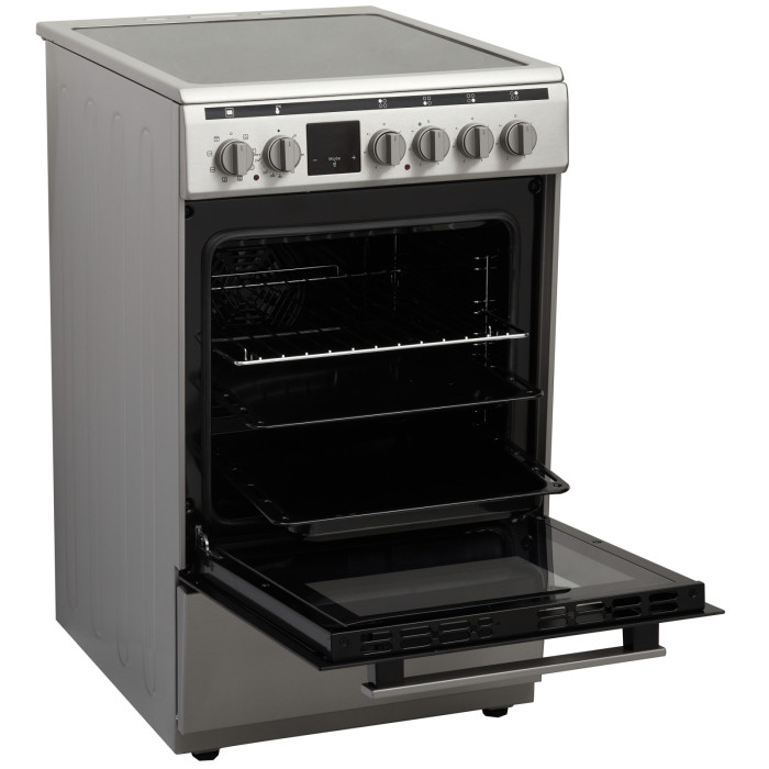 ELEYUS IMPULS 5008 V – кухонная плита со стеклокерамической варочной поверхностью и электрическим духовым шкафом объемом 53 л. Режим турбогриля создает красивую золотистую корочку, а конвекция равномерно распределяет горячий воздух, чтобы блюда одинаково пропекались снаружи и внутри.