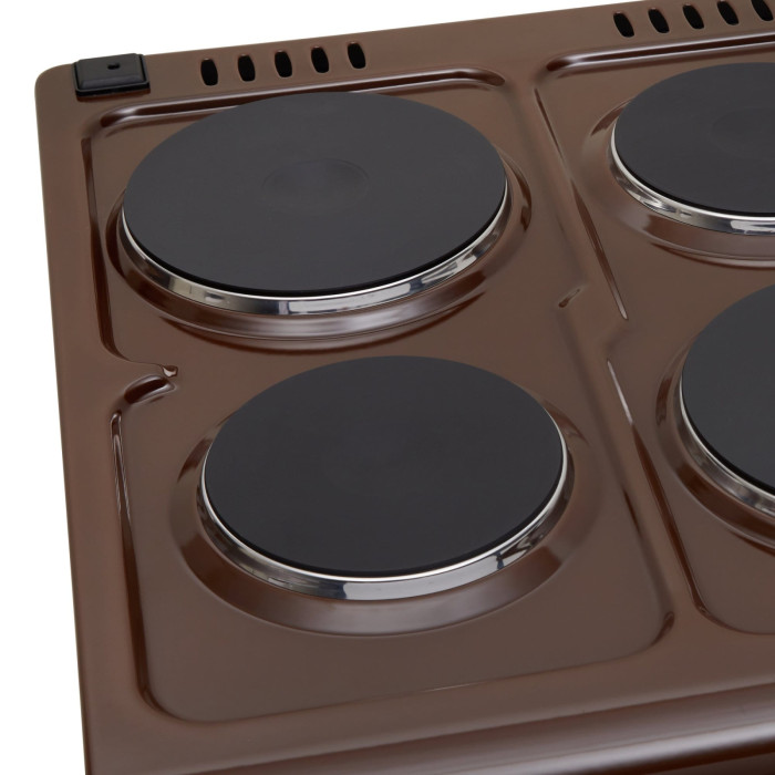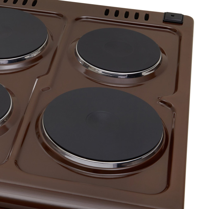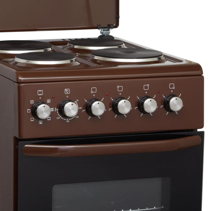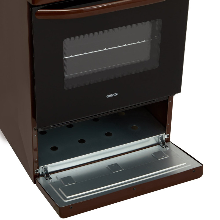 ELEYUS NEXT 5007 H4 – кухонная плита с электрической варочной поверхностью и электрическим духовым шкафом объемом 52 л. Металлическая крышка защищает стену от загрязнений при готовке, а регулируемые ножки позволяют изменить высоту плиты и надежно ее установить.
