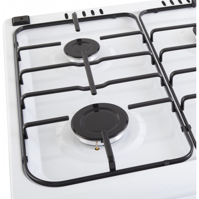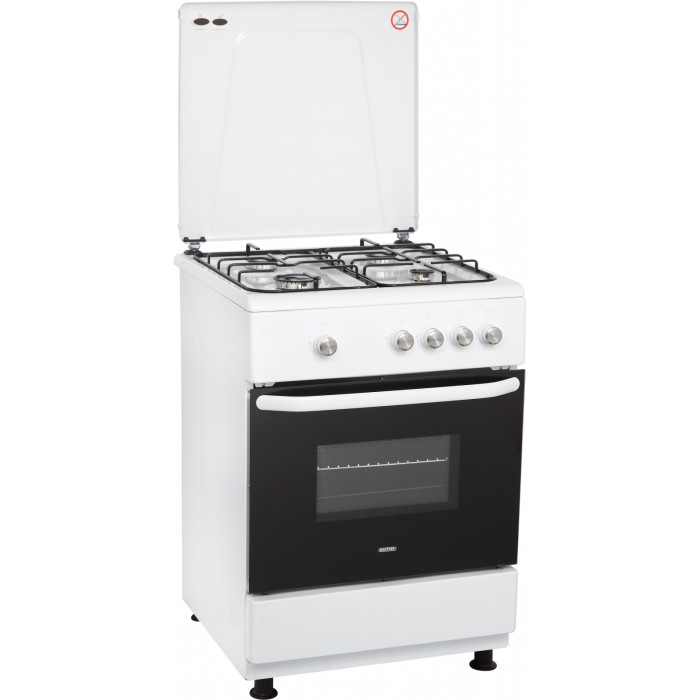 ELEYUS ORUM 6001 – кухонная плита с газовой варочной поверхностью и газовым духовым шкафом объемом 64 л. Металлическая крышка защищает стену от загрязнений при готовке, а регулируемые ножки позволяют изменить высоту плиты и надежно ее установить.
