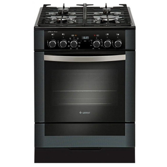 Электрическая духовка. Плита оснащена вместительным духовым шкафом объемом 52 литра. В ней есть электрический гриль, шашлычница и вертел с электроприводом, благодаря чему вам понравится готовить мясные блюда. Также имеется двойная подсветка духовки, которая позволяет контролировать степень прожарки продукта. Внутри духовка покрыта эмалью. Тип очистки – традиционный.