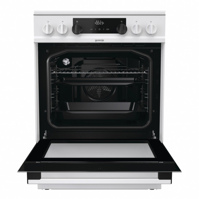 Основные преимущества плиты Gorenje ECS6350 раскрываются при включении духовки. Большой внутренний объем за счет особой формы потолка добавляет пространства и создает объемные потоки горячего воздуха. Это даст эффект конвекции, который можно усилить включением вентилятора. Возможность готовить на нескольких уровнях уже стало визитной карточкой бренда. Вам обеспечивается максимально возможная площадь для приготовления блюд с технологией SuperSize.