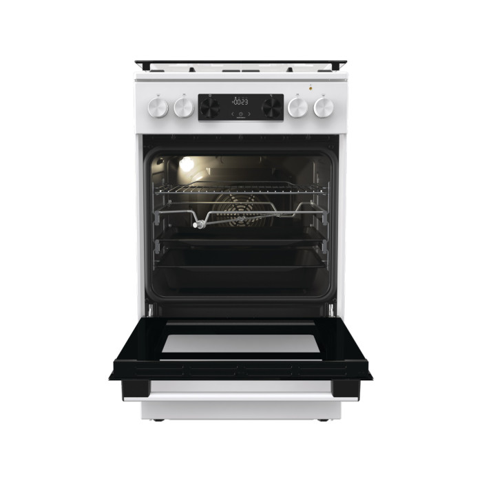 Комбинированная кухонная плита GKS5C70WF. Характерная закругленная форма – одно из основных преимуществ духовых шкафов Gorenje. Созданный по подобию традиционной дровяной печи, такой духовой шкаф обеспечивает свободную циркуляцию горячего воздуха. Блюдо прогревается равномерно и со всех сторон, благодаря чему получается идеальным: хрустящей снаружи и сочной внутри