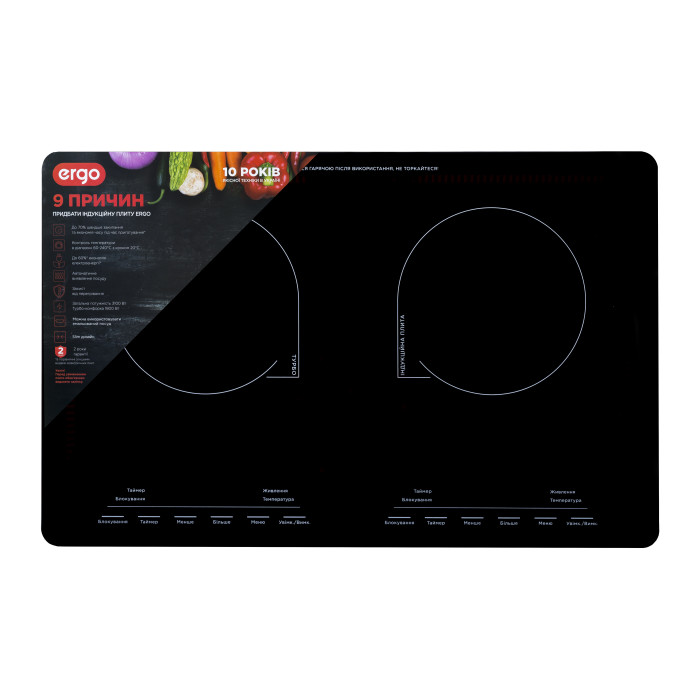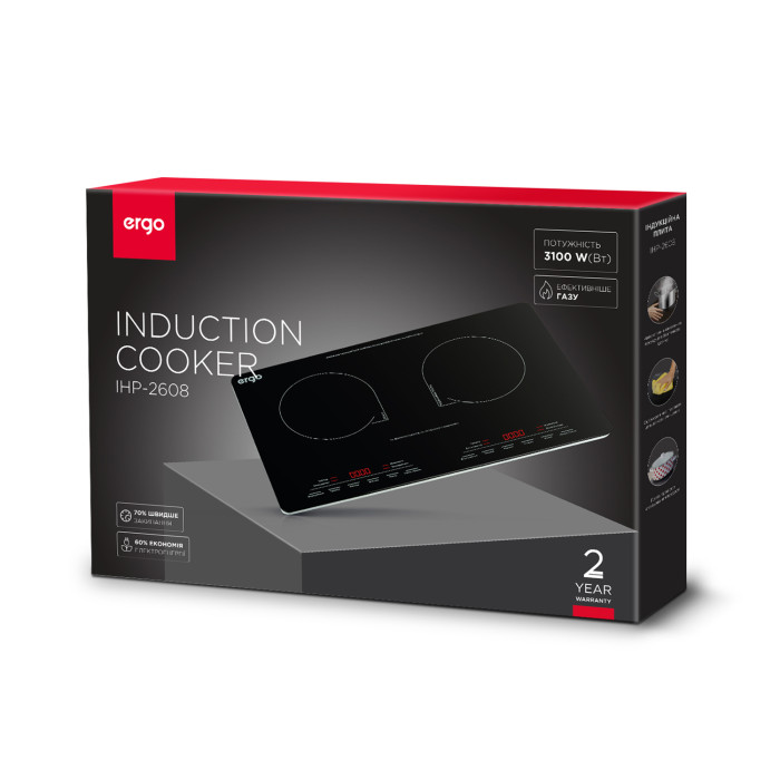 ERGO IHP-2608 Black готовит ваши любимые блюда за счет индукции, поэтому плита нагревает только посуду, при этом вся остальная поверхность остается холодной.