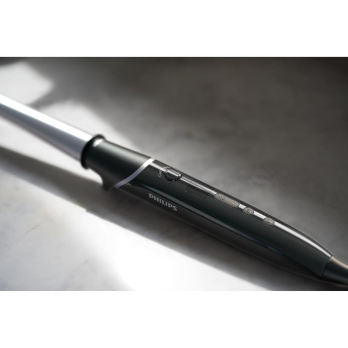 Плойка Philips StyleCare BHB872/00 работает в девяти температурных режимах. Вы сможете выбирать настройки температуры, учитывая индивидуальные особенности волос. Максимальная температура прибора достигает 210 °C. Такая температура позволяет быстро придать нужную форму даже густым и жестким волосам. Плойка готова к работе уже через 45 секунд после включения. Уникальный индикатор звуковым сигналом оповещает о том, что локон готов. Эта функция способствует созданию прекрасных локонов без перегрева волос. Функция блокировки кнопок предотвращает случайный сброс настроек.