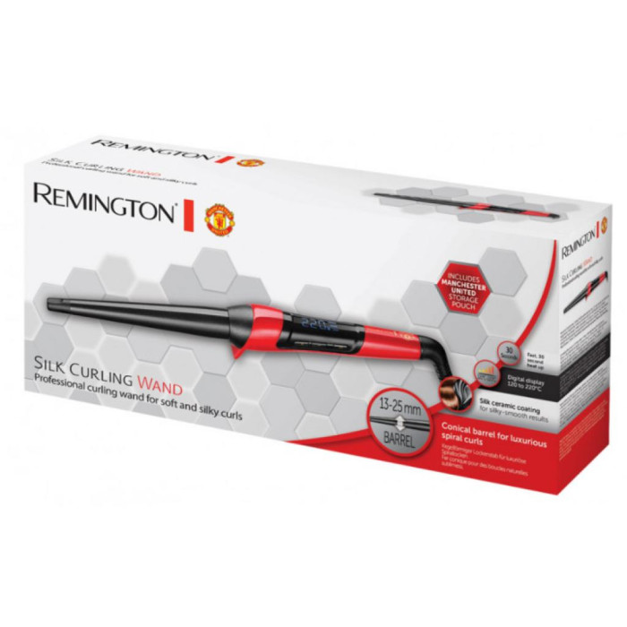 Коническая плойка CI9755 Silk от Remington создана в коллаборации с ФК «Manchester United» – прибор способен помочь вам в создании причесок салонного качества у вас дома.