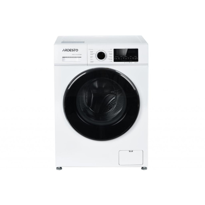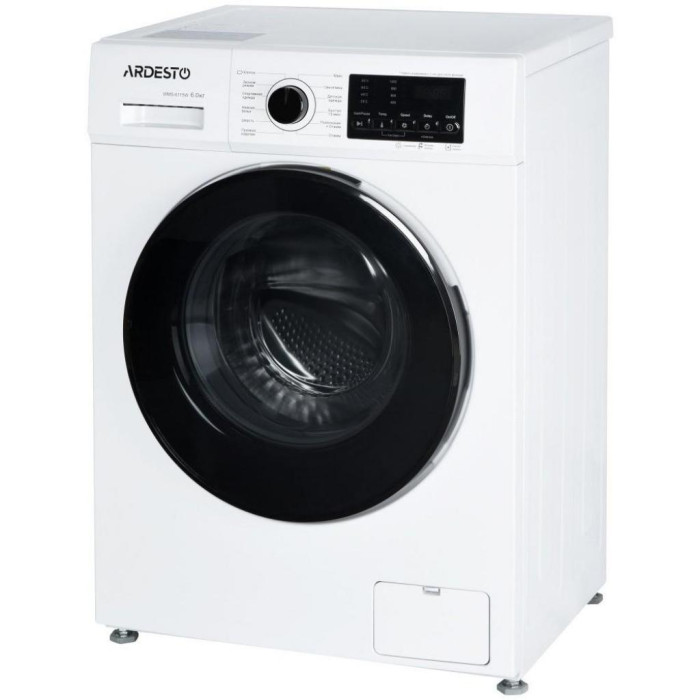 Автоматическая стиральная машина Ardesto WMS-6115W с фронтальной загрузкой белья, встроенным дисплеем и дизайнерским иллюминатором черного цвета.