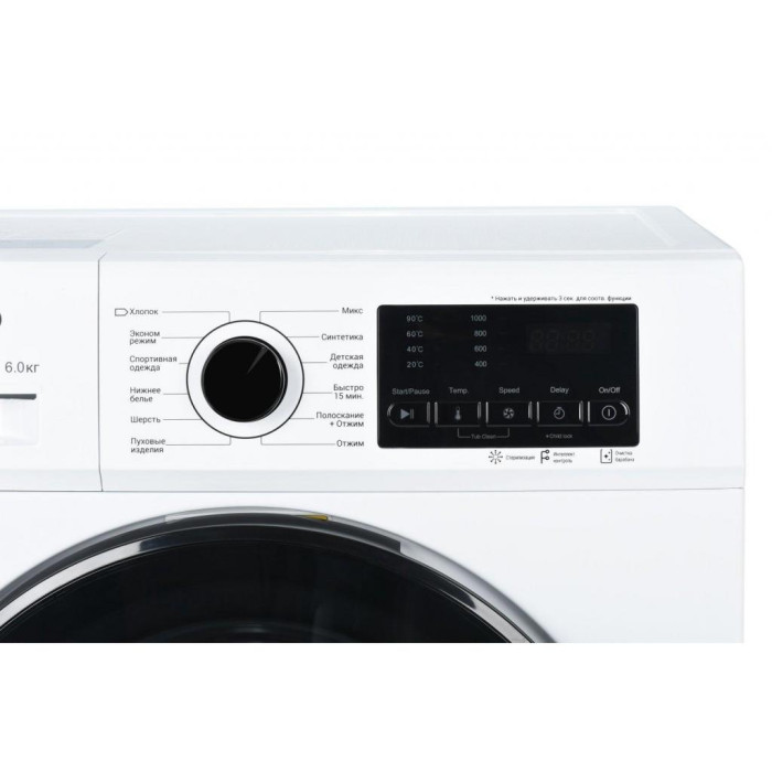 Выбор температуры воды - 20 °C, 40 °C, 60 °C, 90 °C. Присутствующие режима отложенного стирки, очистки барабана и функция блокировки от детей. Стерилизация барабана осуществляется водой с температурой близкой к кипению. Максимальная скорость отжима достигает 1000 оборотов в минуту, а класс энергосбережения - A ++.