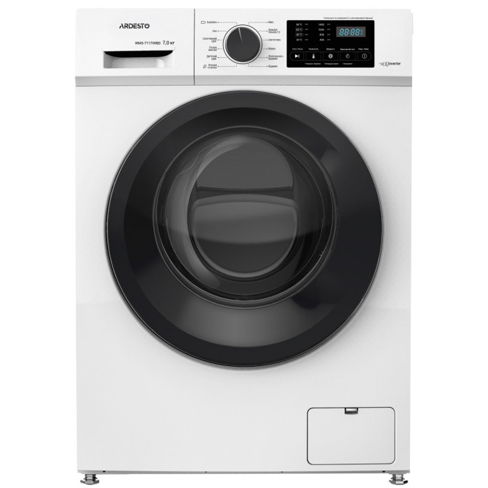 Автоматическая стиральная машина в корпусе белого цвета с передней загрузкой. Устройство может постирать и отжать 7 кг белья. Стиральная машина оснащена тихим и мощным инверторным двигателем BLDC. Максимальная скорость вращения барабана – 1400 об/мин., максимальная мощность – 1750 Вт. Класс энергоэффективности А+++, класс водостойкости ИРХ4, класс защиты I. Модель WMS-7117IWBD имеет интуитивно понятный дисплей и подсветку барабана. Программы: стирка с паром, хлопок, эко, спорт, нижнее белье, шерсть, пухо-перьевые изделия, отжим, полоскание и отжим, экспресс 15´, деликатная стирка, синтетика, микс. Предусмотрены режимы отложенной стирки, очистка барабана и функция блокировки от детей. Размер 595 × 480 × 850 мм. Вес 53 кг.