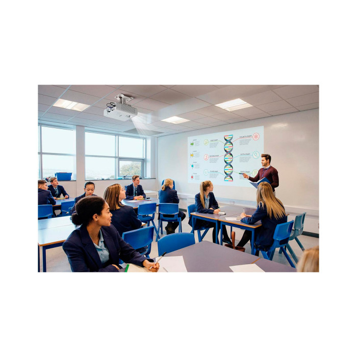 Этот легкий и компактный проектор можно устанавливать в любом направлении без потери качества изображения, он поддерживает работу с ультраширокими экранами 16:6, HDMI и бесшовную мультипроекцию для систем из нескольких проекторов.