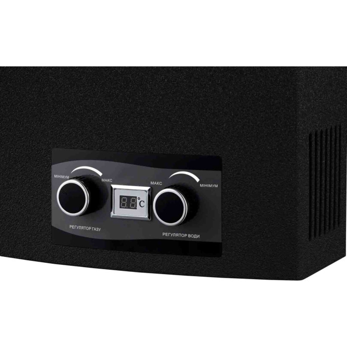 На лицевой стороне колонки расположены регуляторы газа и воды, благодаря которым можно настроить подогрев воды до комфортной температуры. Удобство использования обеспечивает LCD-дисплей, на котором отображается температура воды на выходе из газовой колонки.