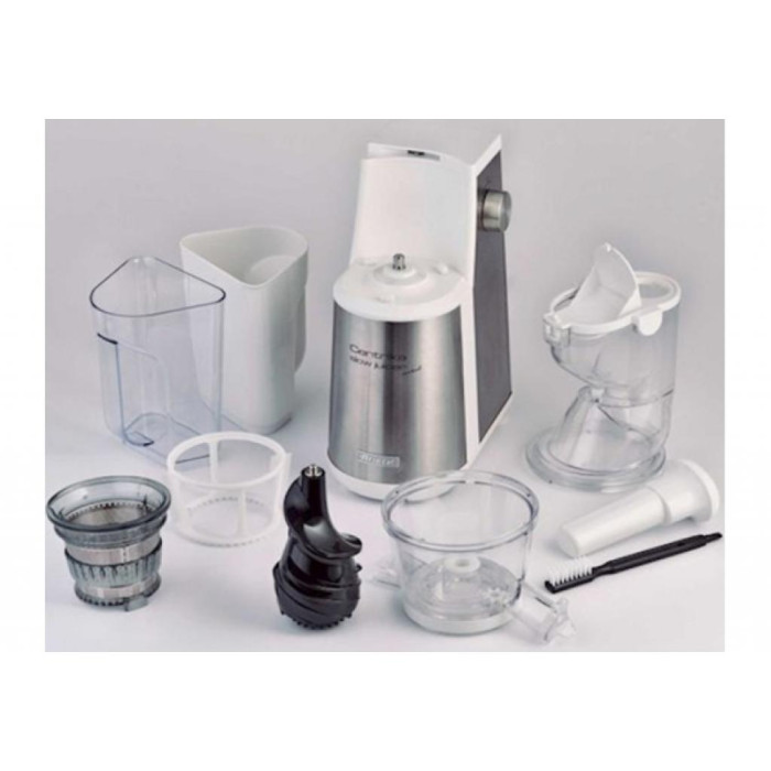 Соковыжималка Ariete 177/1 относится к шнековым вариантам. Такие соковыжималки обычно используют для овощей и фруктов разной твердости. Данная техника использует систему автоматического выброса мякоти, которая отделяется в специально предназначенный для этих целей контейнер. Прямая подача сока осуществляется через специальный резервуар, который прозрачен, а, следовательно, вы видите все этапы работы техники. Регулируется работа соковыжималки посредством поворотного механического переключателя скорости ее вращения.