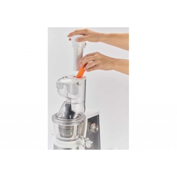 Чтобы вы могли работать с самыми разными фруктами и овощами, создатели модели сделали широкую горловину у загрузочного отверстия. Она обеспечивает быстрый и беспроблемный проход ингредиентов, которые нужно превратить в сок и жмых. Таким образом вы избавляетесь от долгих изнурительных подготовительных мероприятий и нарезке составляющих на части.