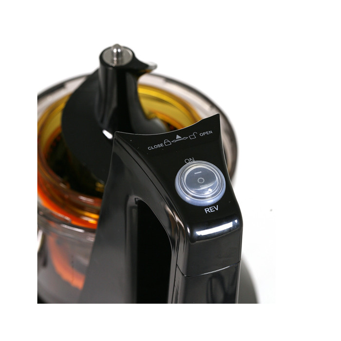 реверс, система "капля-стоп", захист від неправильної зборки, система прямої подачі соку, автоматичне викидання м'якоті, широкий жолоб для завантаження