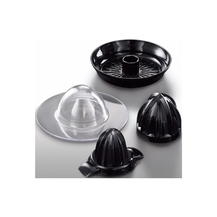 Соковыжималка укомплектована двумя конусными насадками разных размеров. Вы сможете легко выжать сок как из большого грейпфрута, так и маленького лайма.
