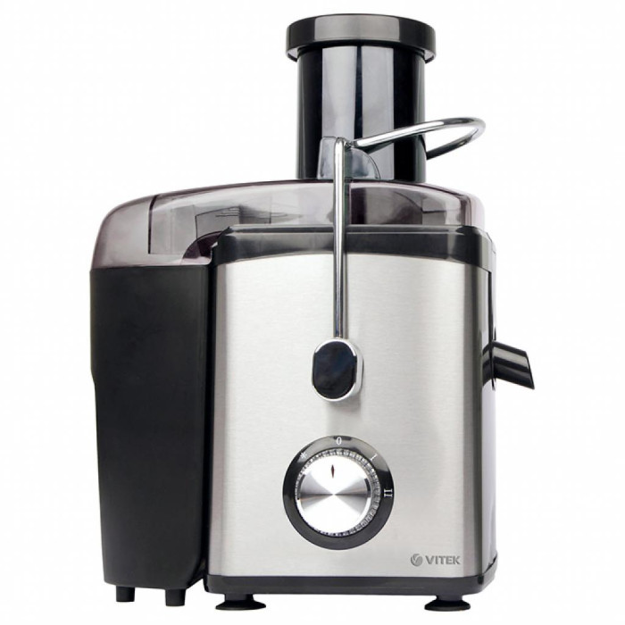 C мощной (100Вт) стильной соковыжималкой приготовить свежие натуральные соки очень легко – Вам нужно лишь тщательно вымыть фрукты или овощи и удалить плодоножки. В модели соковыжималки VT-3653 установлен эффективный, долговечный, с низким уровнем шума (67,5 дБ) электромотор, а горловина имеет диаметр 70 мм - подходит для целого яблока, или иного фрукта! Модель оснащена прочными стальными фильтрами и лезвиями из нержавеющей стали, которые легко моются и не изнашивается со временем, коническая форма фильтров позволяет наилучшим образом организовать отброс мякоти в контейнер объемом 1,0 л. Корпус модели также выполнен из нержавеющей стали – прочного и долговечного материала.